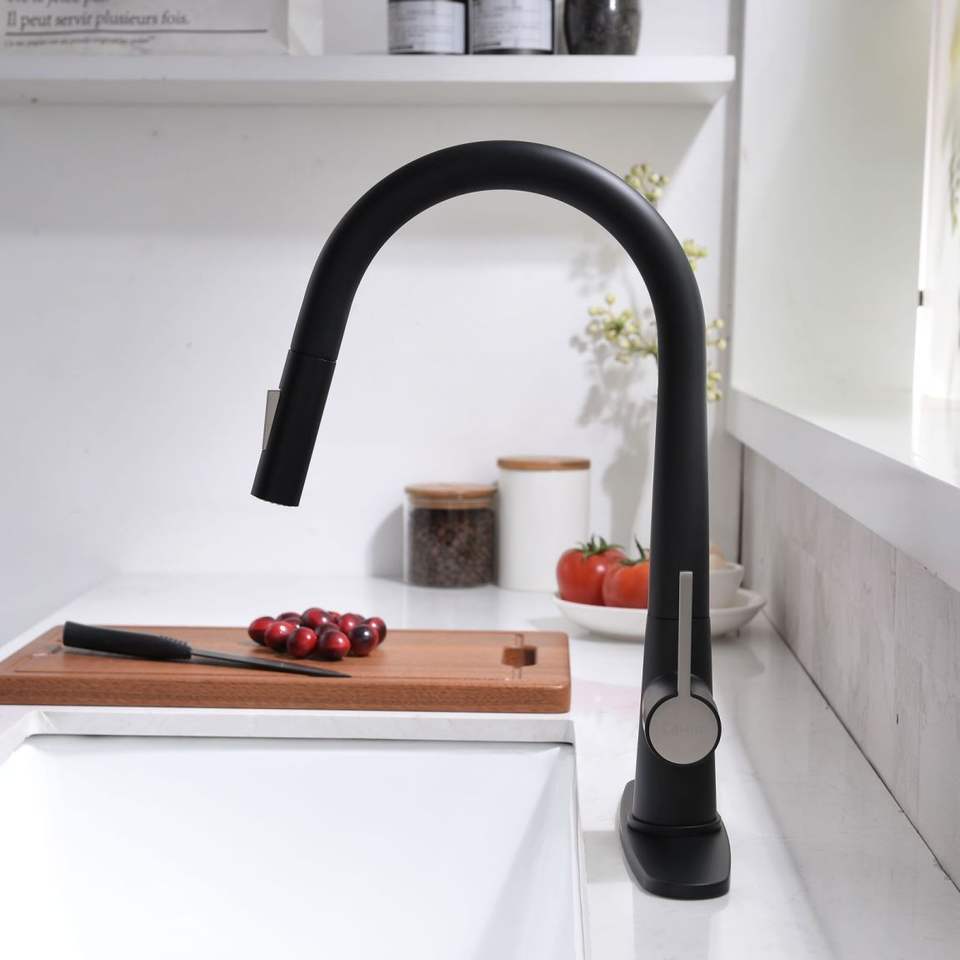 Robinet à tirette à une poignée en acier inoxydable DB avec pulvérisateur pour cuisine Nouveau robinet de cuisine noir