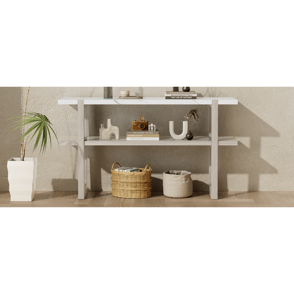 DB TREXM Table console rétro élégante grise avec dessus effet marbre Solutions de rangement polyvalentes pour l'entrée et le salon