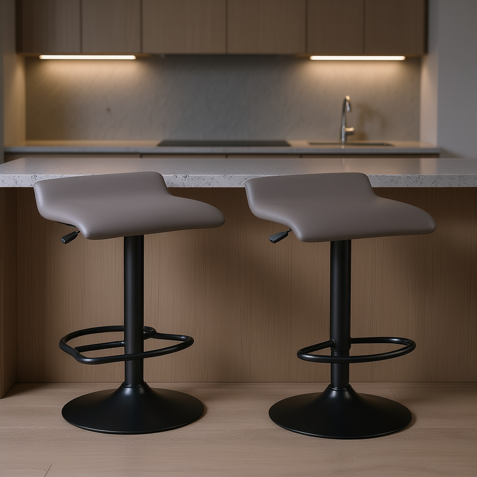 Tabourets de bar pivotants réglables contemporains DB Tarah, structure métallique gris ardoise noir, design moderne pour cuisine et bar à domicile