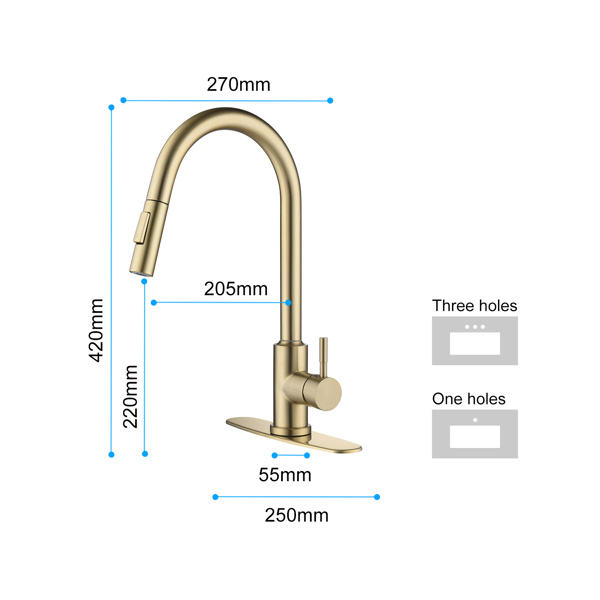 Robinet de cuisine avec pulvérisateur à tirette DB Touch avec finition or brossé