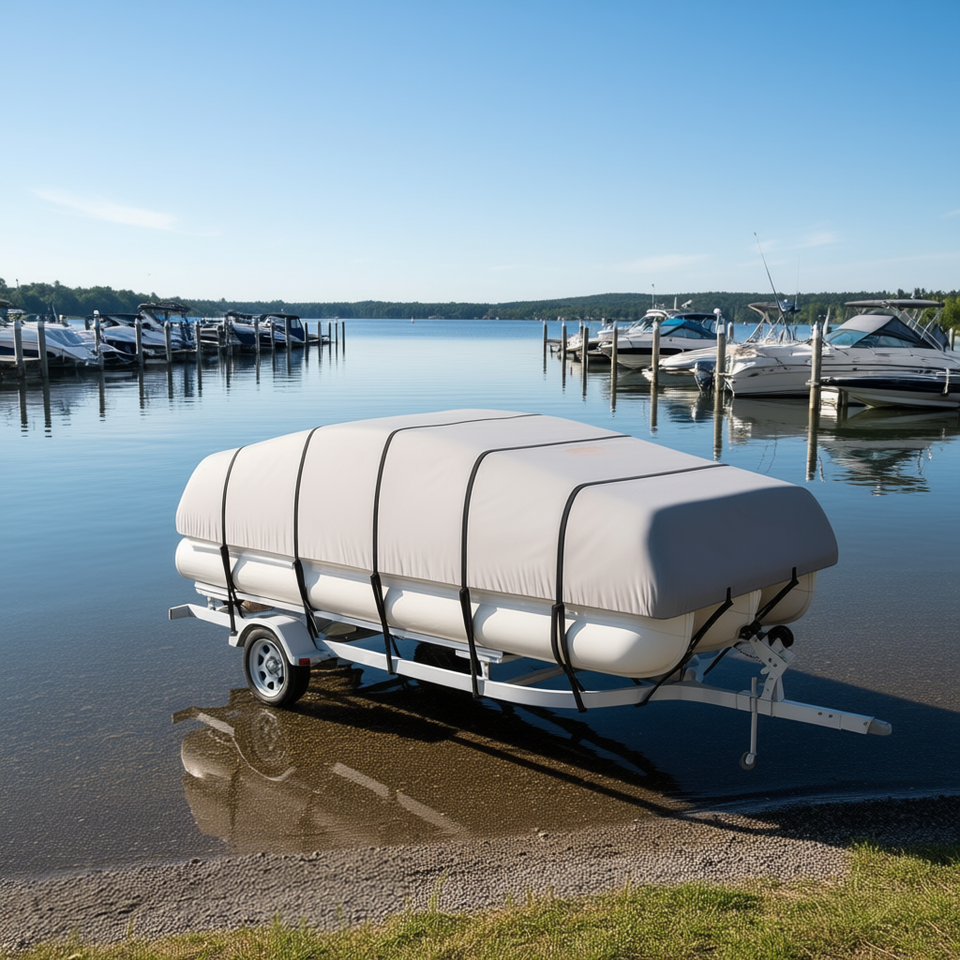 DB Wholesale 19'-20' Pontoon Boat Cover 800D Marine Grade Waterproof Polyester Trailerable Motor Cover
