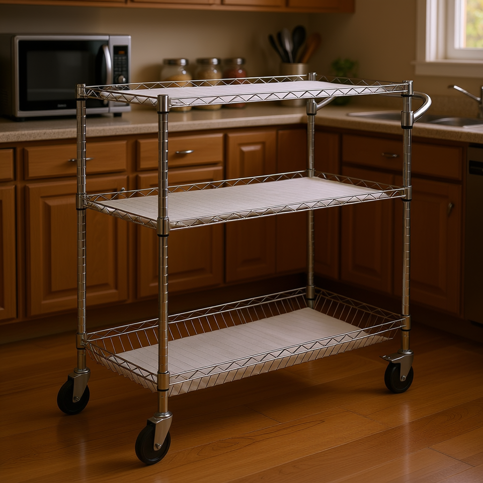 Chariot utilitaire en métal à 3 niveaux, capacité de 661 lb, roues pivotantes pour le stockage des aliments, cuisine, salle de bain
