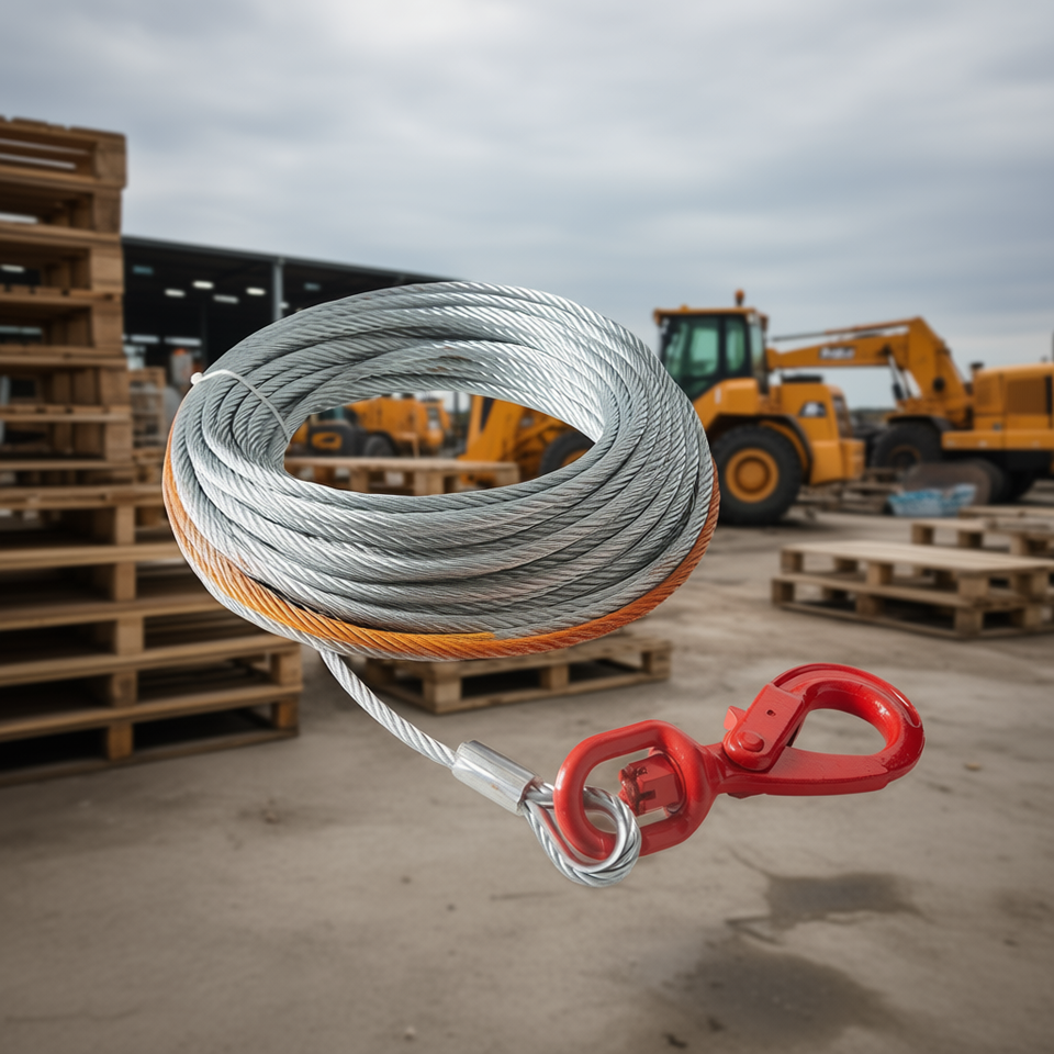 Câble de treuil en acier galvanisé 3/8 pouce x 75 pieds avec crochet pivotant pour applications de levage et de traction intensives