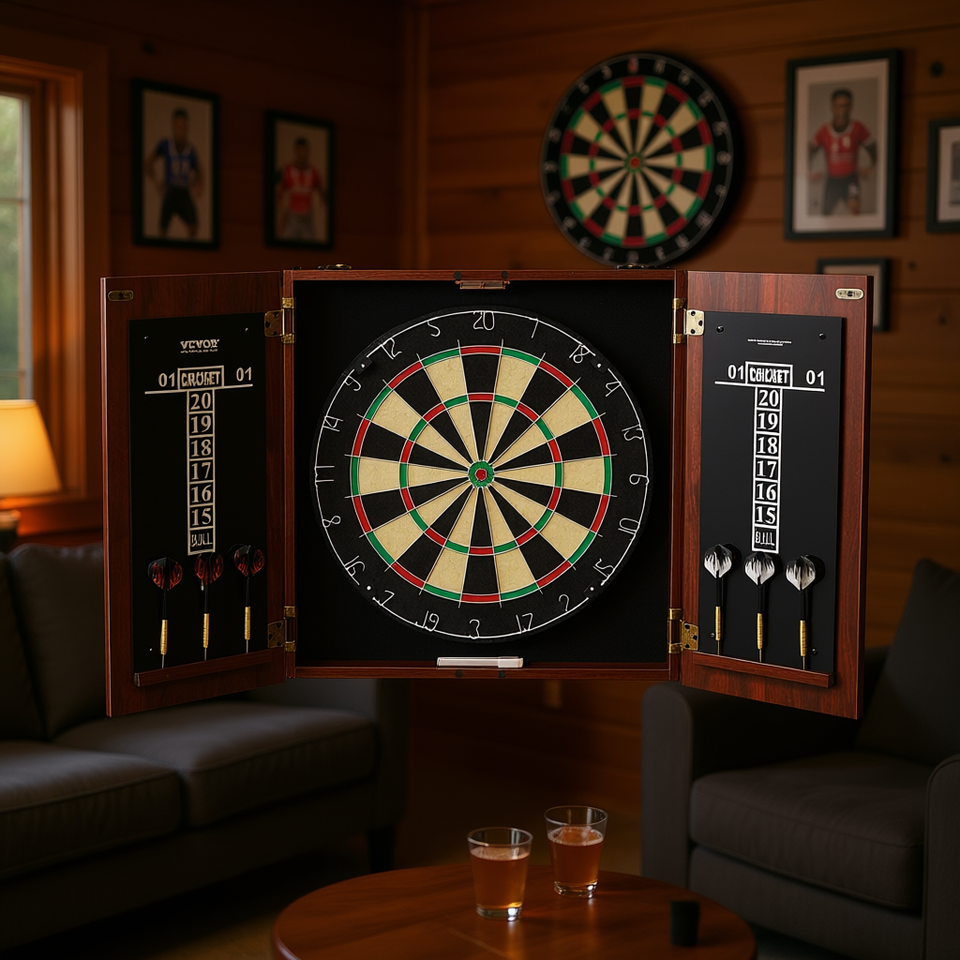DB Wholesale Ensemble de fléchettes à pointe en acier avec armoire, taille officielle, accessoires complets, fléchettes pour adultes