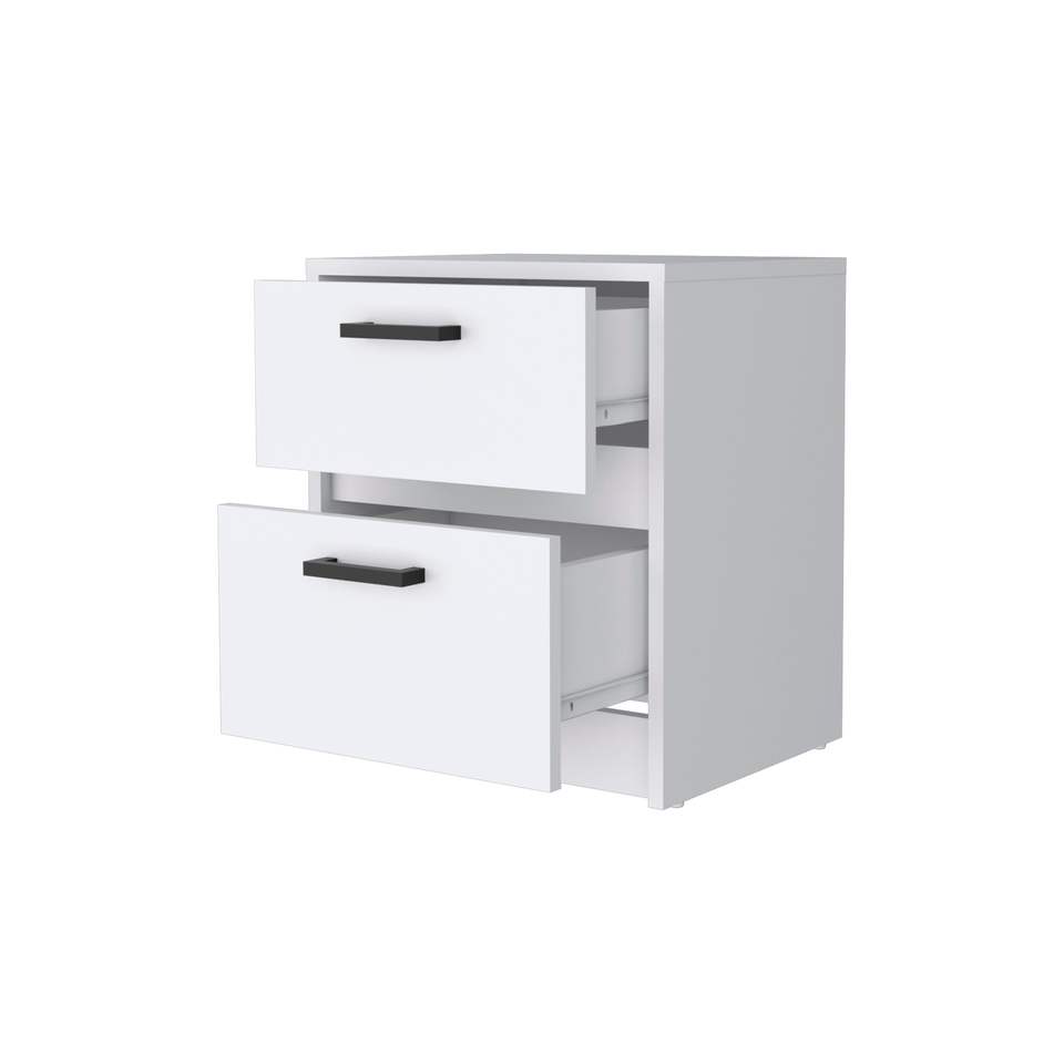 Table de chevet 2 tiroirs en bois massif blanc DB Design minimaliste antique européen moderne assemblé charge sans fil pour une utilisation en appartement