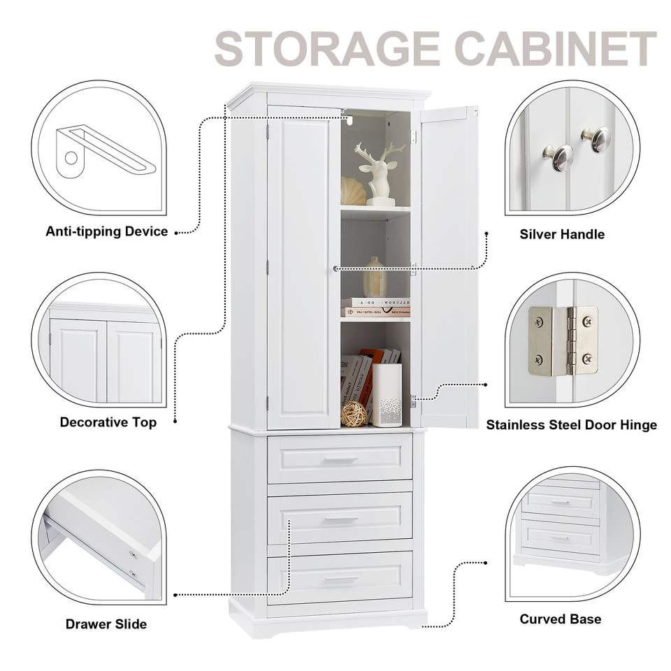 Armoire de rangement haute DB White avec trois tiroirs pour l'organisation de la salle de bain ou du bureau