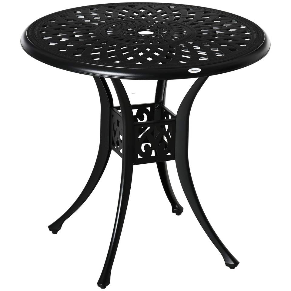 DB pour Offre Spéciale 30 \ "Table de salle à manger de patio ronde Table de bistro extérieure en fonte d'aluminium antique avec trou de parapluie pour cour noire
