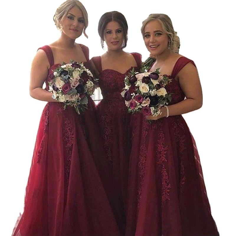 DB035 Robe de Mariage Bourgogne Robes de Demoiselle d'Honneur Longues Sans Manches Appliques en Dentelle Robes de Soirée Formelle Pas Chères Robes de Bal Vestidos