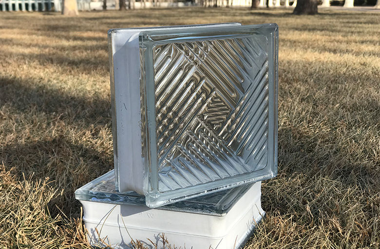 Bloc de verre semi-transparent DBDMC, motif plat, brique de verre, pavé, salle de bain, extérieur, hôtel, hall industriel, mur rideau, escalier