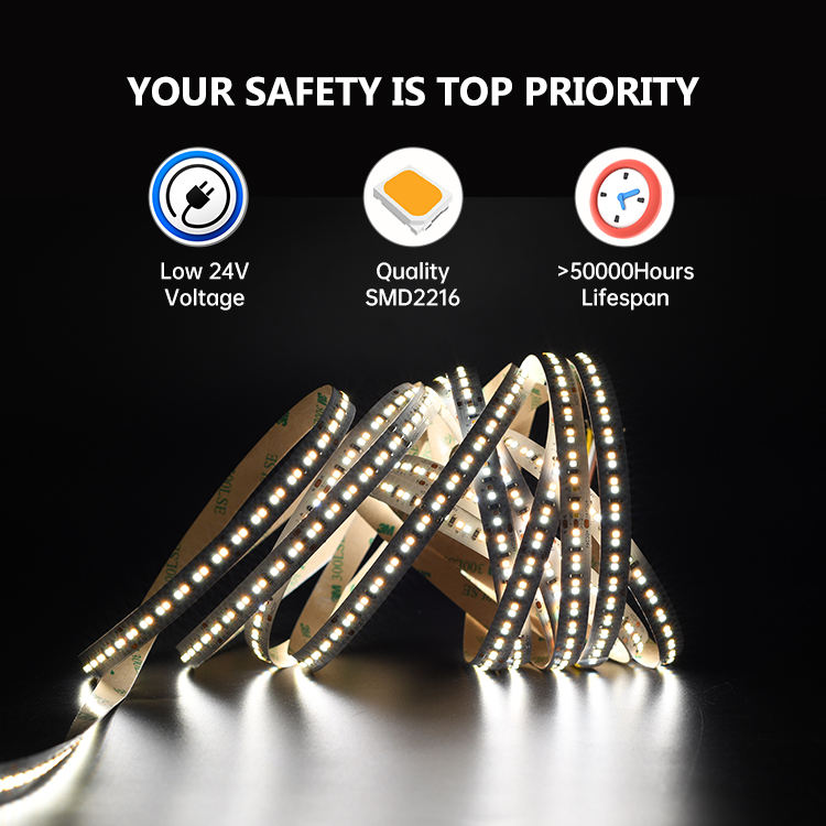 Bande LED CCT à double couleur blanc et blanc chaud DC 24V 2216 10MM 240leds pour armoire, plafond, maison