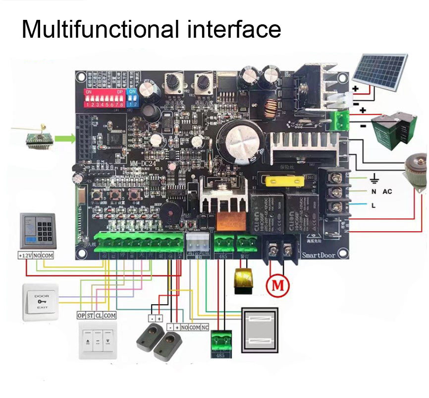 DC 24V batterie de secours intégrée moteur de porte de panneau solaire de haute qualité coulissant pour Kit d'opérateur de porte de 900kg