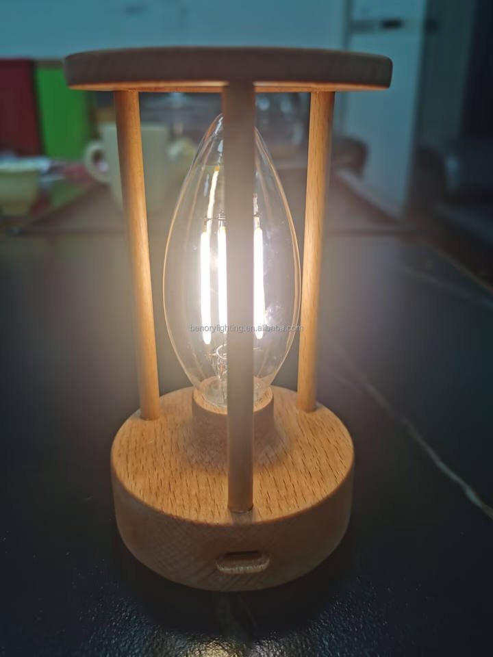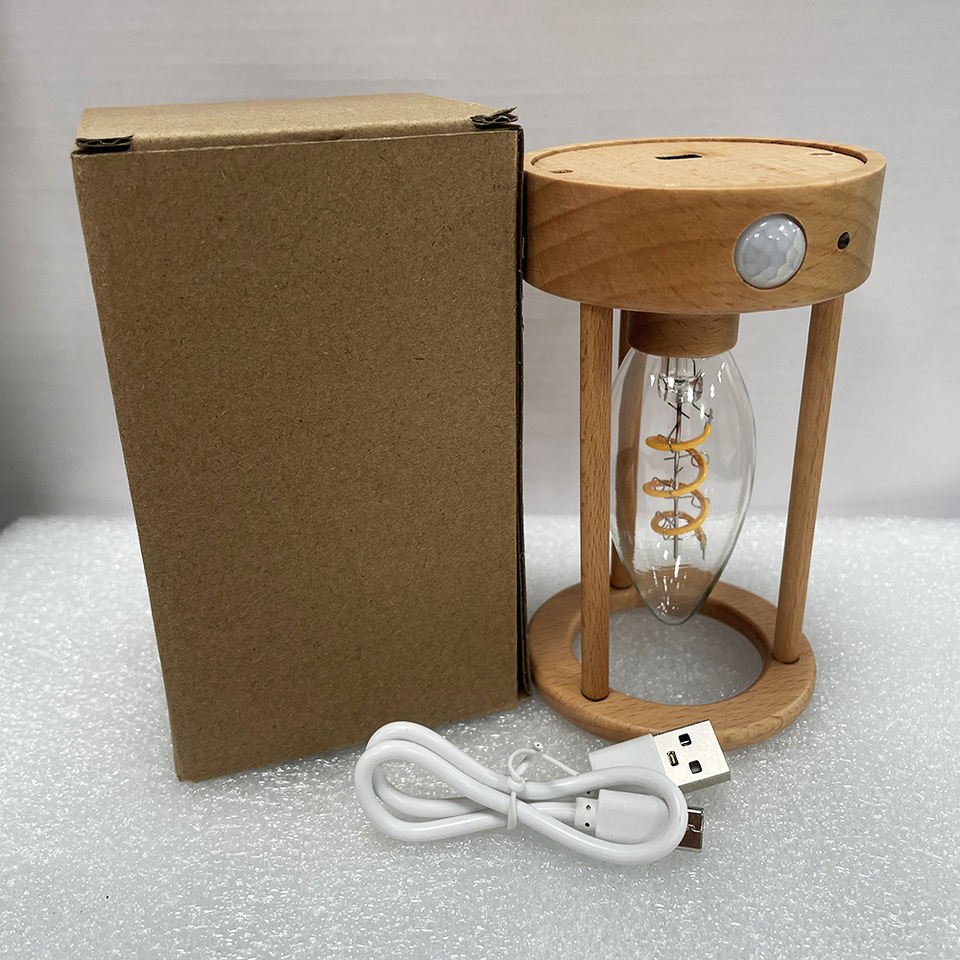 DC 5V Rechargeable détecteur de mouvement Led veilleuse cadeaux de noël Portable lampe de bureau en bois tactile gradation Filament bougie ampoule