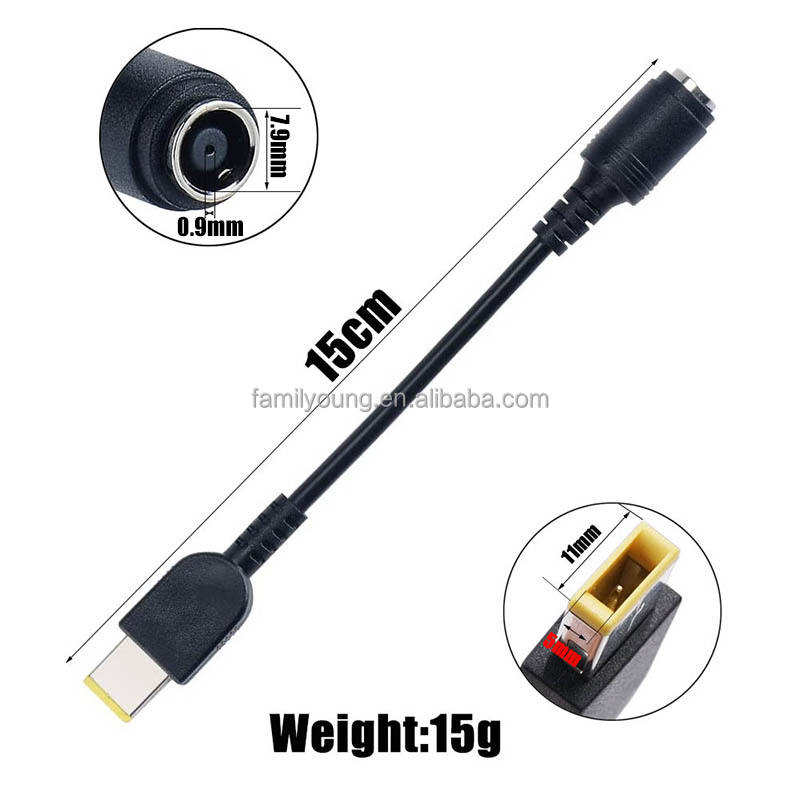 Adaptateur de prise ronde DC 7,9*5,5 mm vers prise carrée, câble adaptateur de chargeur, convertisseur d'alimentation pour IBM Lenovo Thinkpad 15 cm
