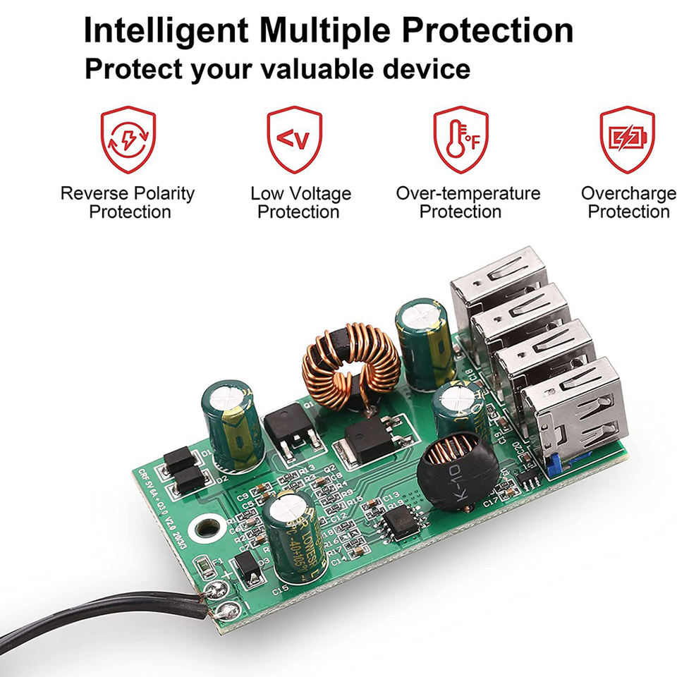 Convertisseur cc avec pince de batterie 12V 24V à 5V 8A adaptateur secteur USB chargeur de régulateur abaisseur 4 Ports identifier automatiquement la charge