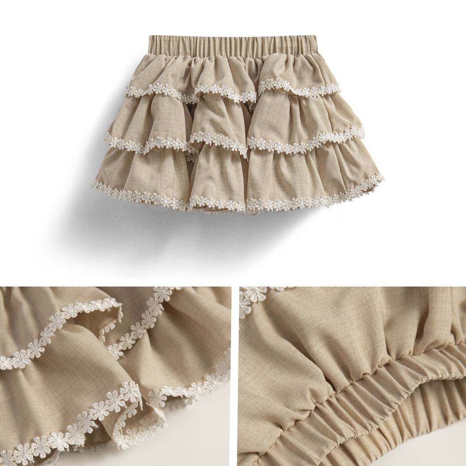 DC Jupe Fille 3 Couches Volants Dentelle Jupe Mini Synthétique Tissé Vêtements Enfants Mode Fille Robes Bébé Vente en Gros