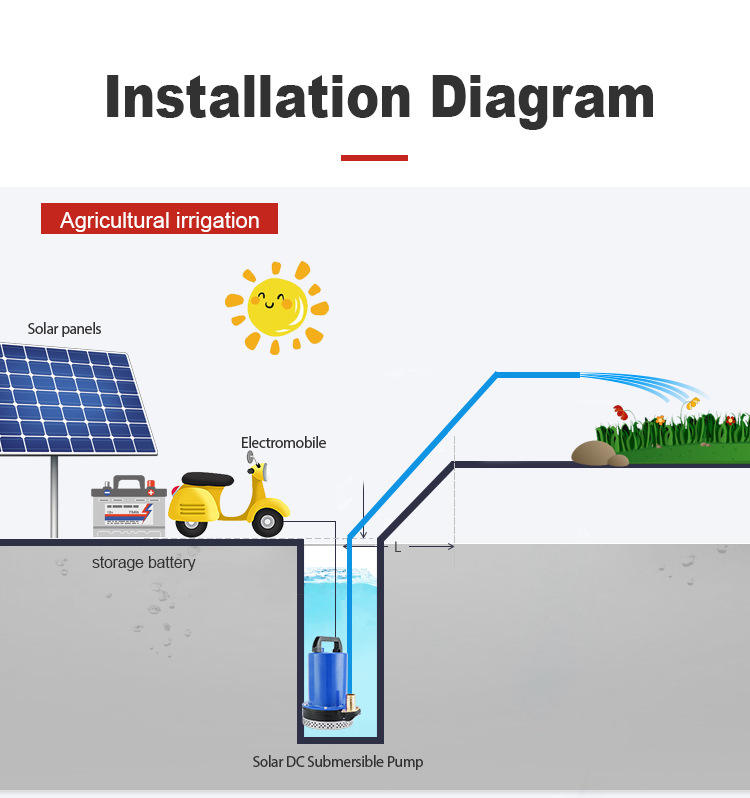 Pompe submersible DC 1 pouce de sortie 12V 24V 36V 48V 60V 72V, haute pression, grand débit, alimentée par batterie solaire