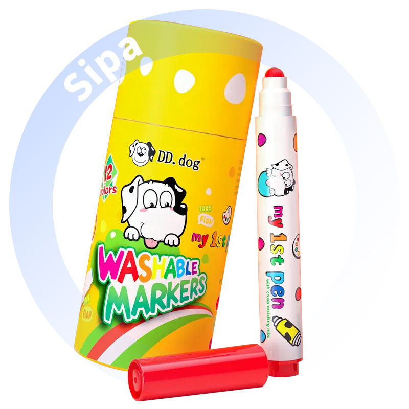 Marqueurs d'art corporel lavables à pointe ronde DC015-O, 12 couleurs, non rétractables, pour tout-petits et enfants, encre à base d'eau, ensemble de stylos à dessin