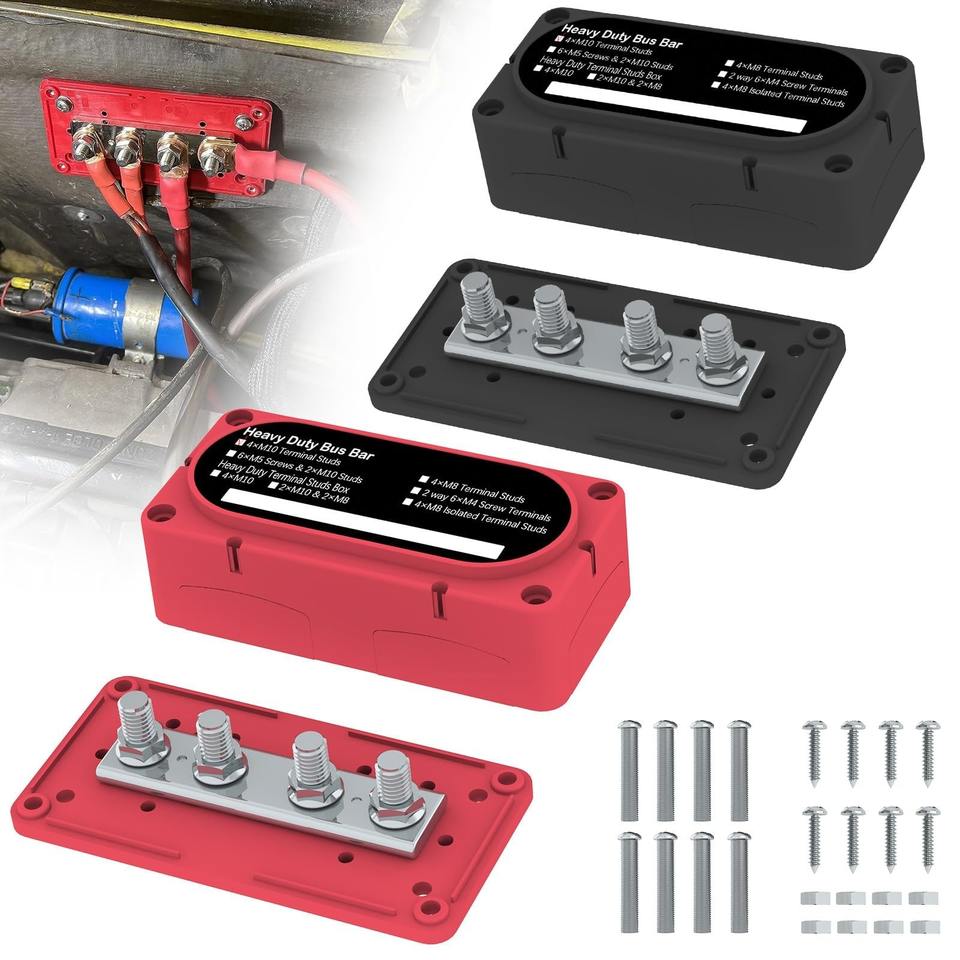 Bloc de boîte de barre omnibus DC12 24 48V 300A avec 4xM8 (5/16 pouces) bloc de jonction de batterie de terre négative positive barre omnibus avec couvercle