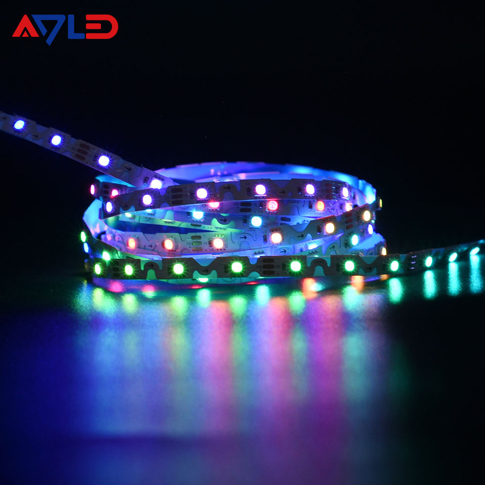 Bande LED intelligente pleine couleur intégrée DC12V SMD3535 SK6812 6mm RGBIC Zigzag 60 LED adressables pour l'ambiance de la salle de jeu