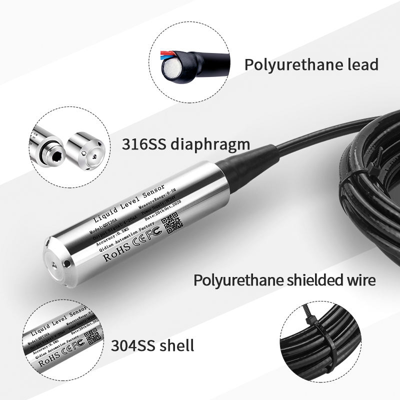 Capteur de niveau de liquide submersible DC24V, transmetteur 4-20mA 0-10V/0-3.3V RS485 pour la mesure du niveau d'eau