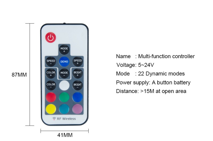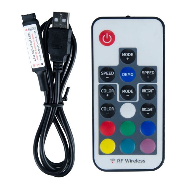 Contrôleur de bande LED RGB à distance RF USB 17 touches DC5-24V pour bandes LED RGB 5V