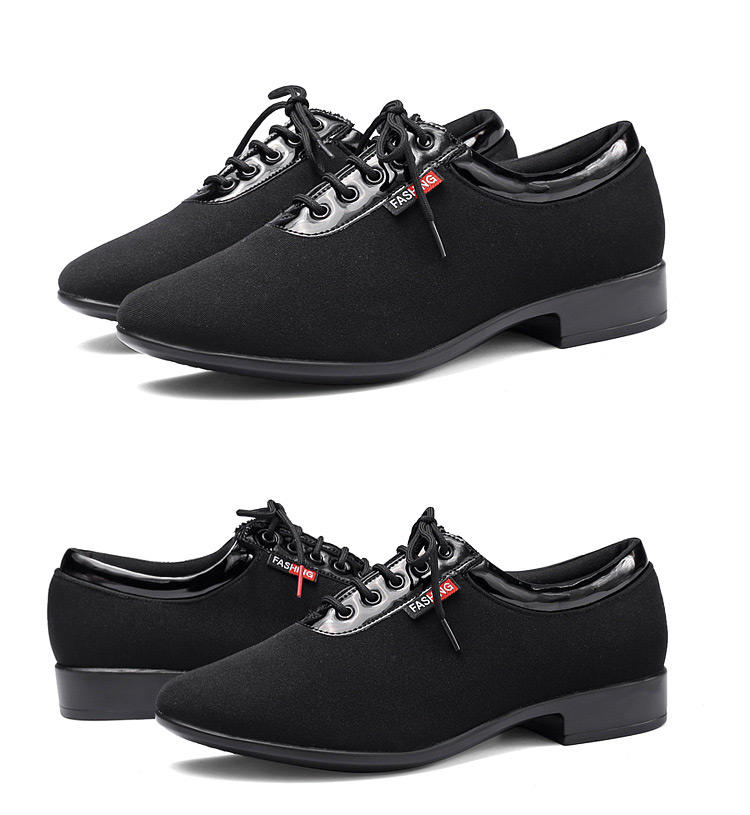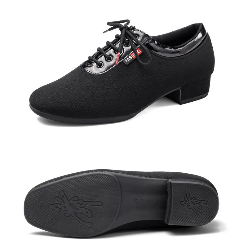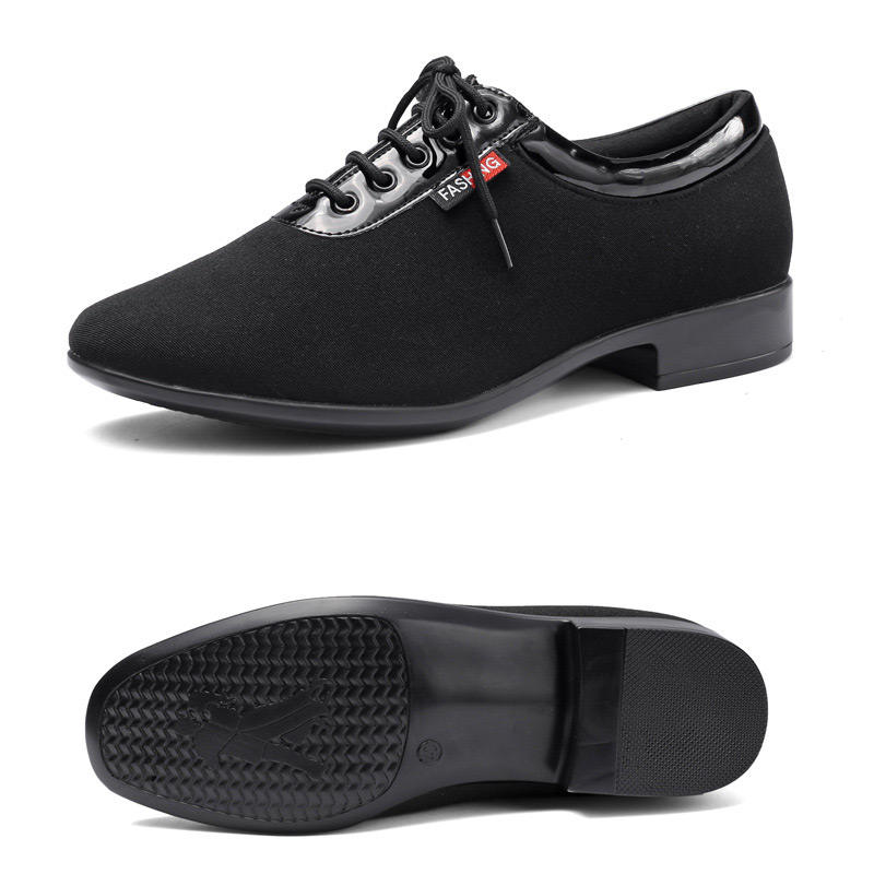 Chaussures de danse de salon, disco, tap et jazz pour hommes, modèle DC9016 Itec, en tissu, modernes, pour l'intérieur, semelle en cuir véritable, noires, à lacets, plates, evergreen