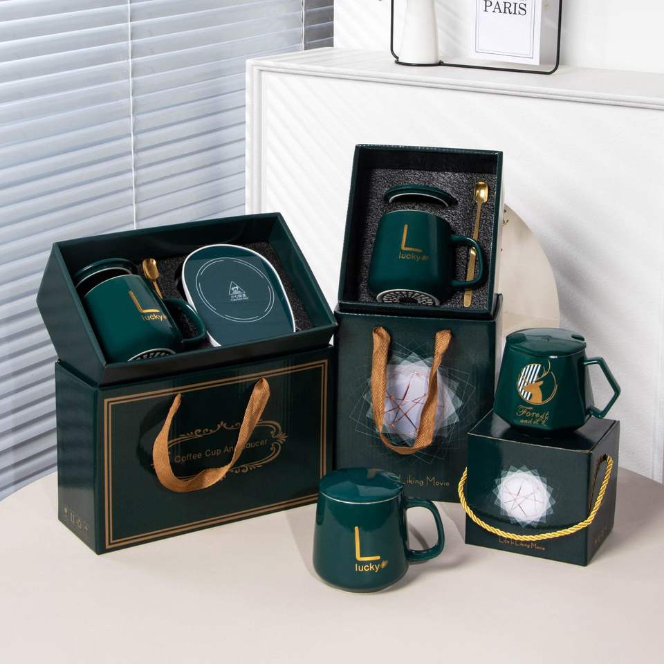 DD2187 Coffret cadeau de mariage personnalisé luxueux avec logo, ensemble de tasses en porcelaine, souvenir d'entreprise, tasse à thé en céramique, tasse à café écologique