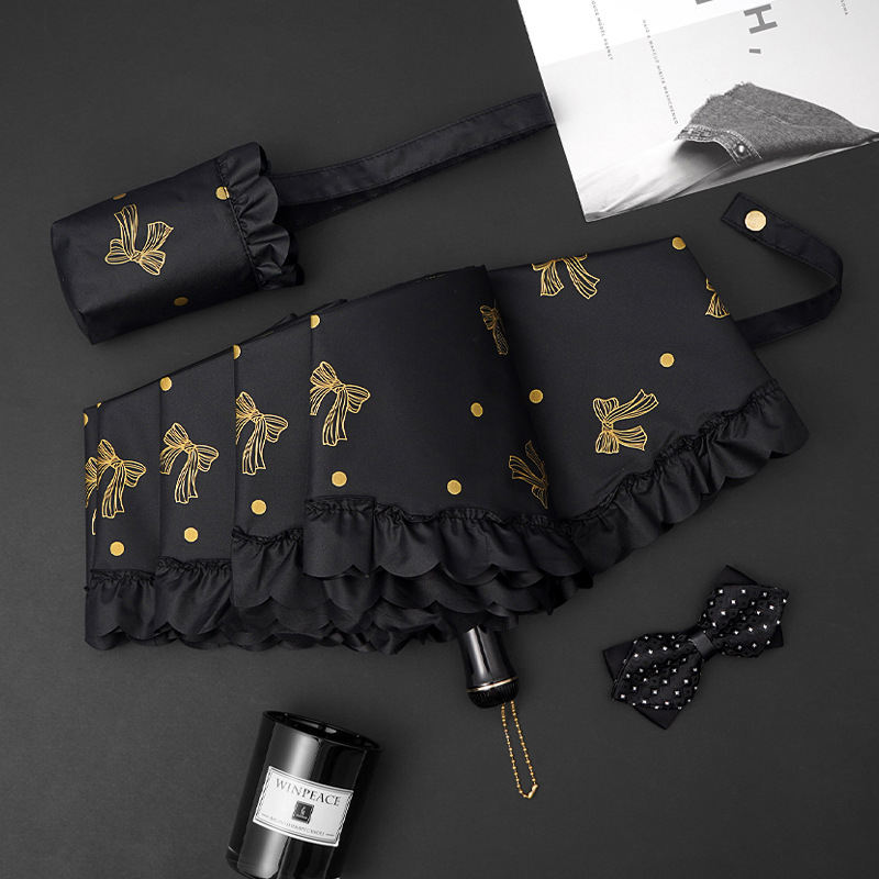 DD2490 UPF 50++ Lacework Rain Umbrellas Uv protection Vinyl Sunscreen Stick Women 5 Fold Ultralight Umbrella