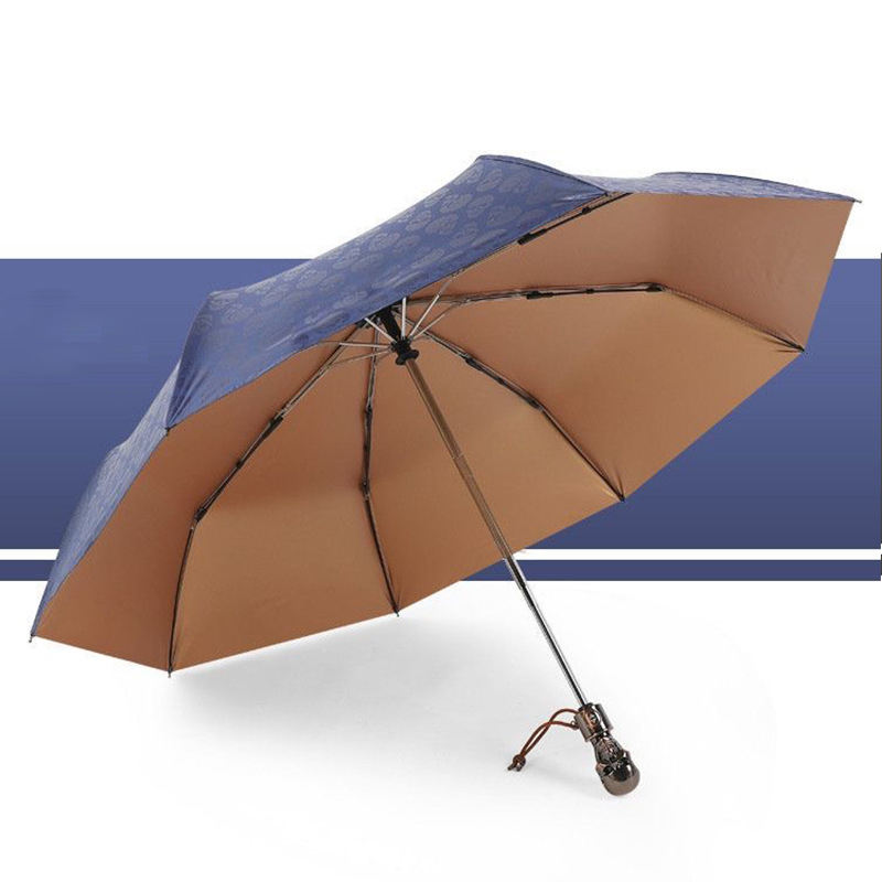 DD3623 entièrement automatique style britannique crâne 3 plis parapluie Protection UV vente en gros haut de gamme hommes cadeau crâne poignée parapluies