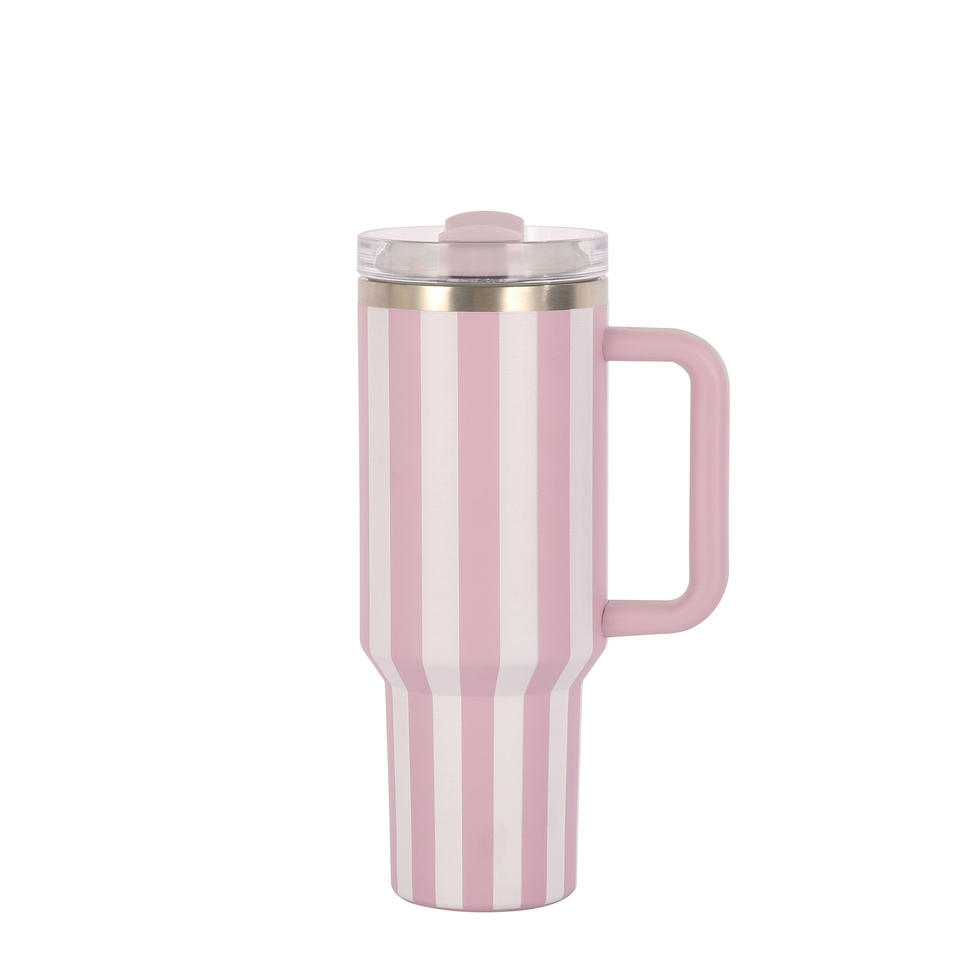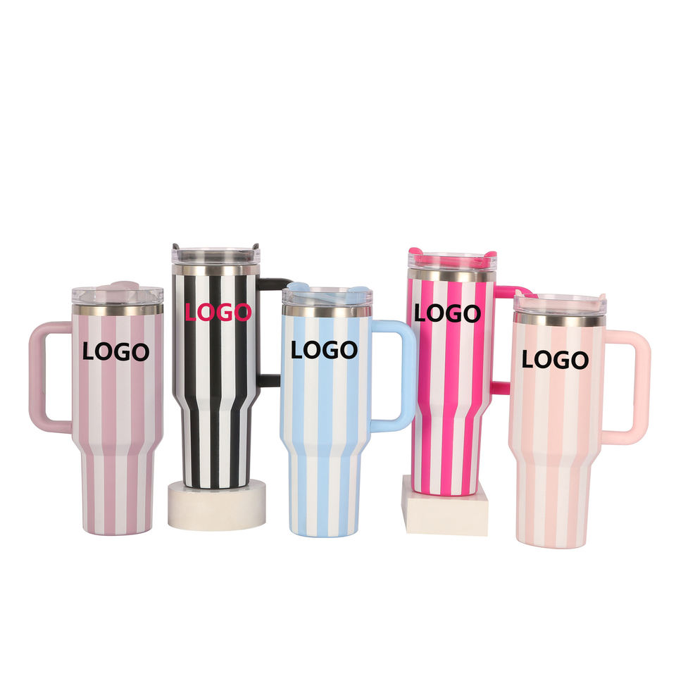 DD4446 en stock nouvelle tasse de 40oz avec LOGO bouteille sous vide en acier inoxydable gobelets rayés de voyage isolés avec couvercle et poignée