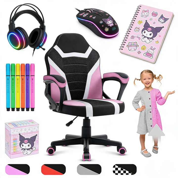 Chaise de jeu ergonomique pour enfants DDP, siège de bureau à domicile, chaises de jeu pour ordinateur avec accoudoirs réglables en hauteur et roulettes