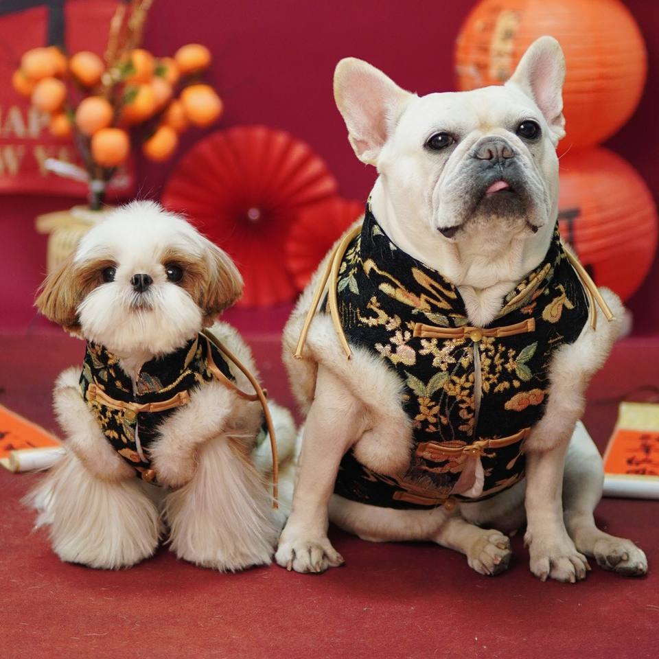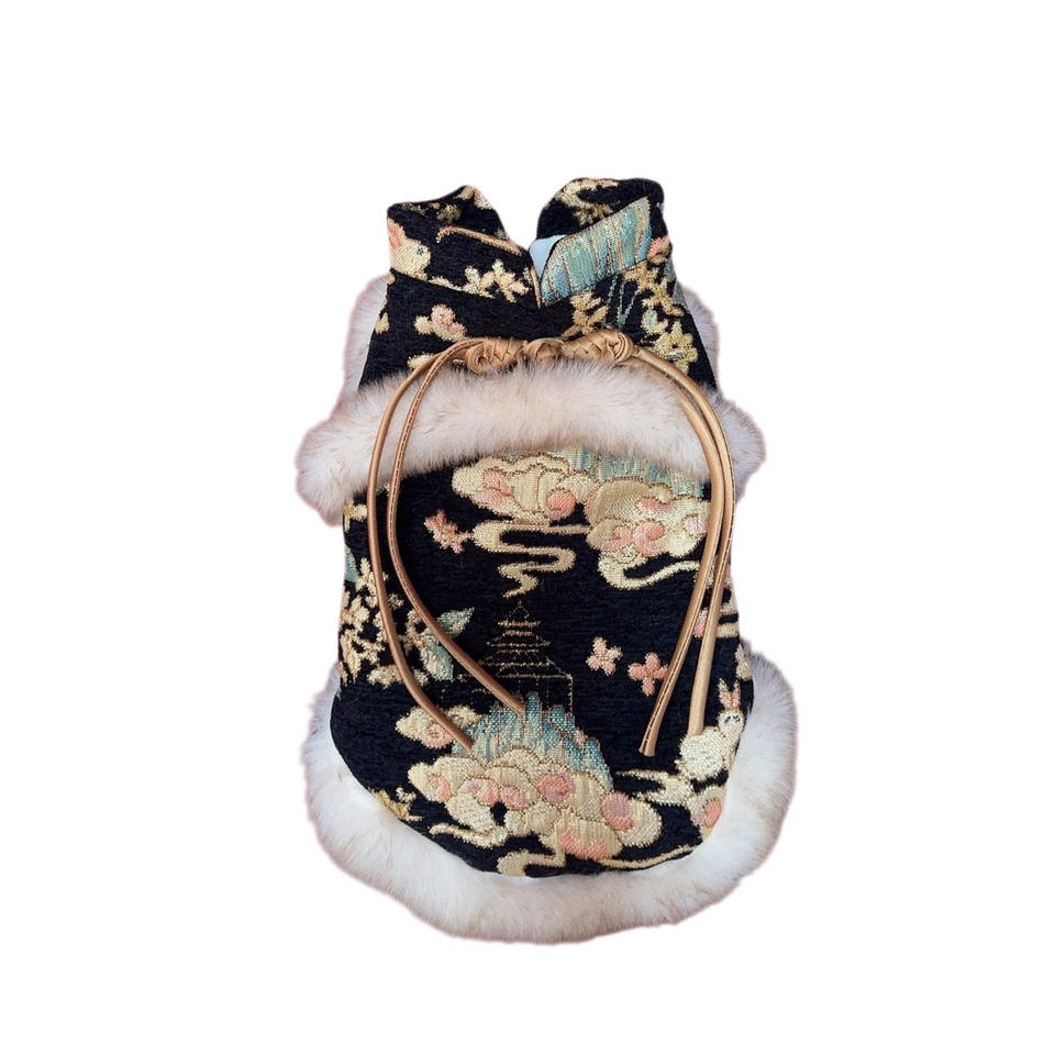 DDPET Vêtements de Nouvel An pour petits chiens, Hiver, Gilet en polaire chenille écologique à grain, Style Tang chinois, Couleur unie, Motif Fadou