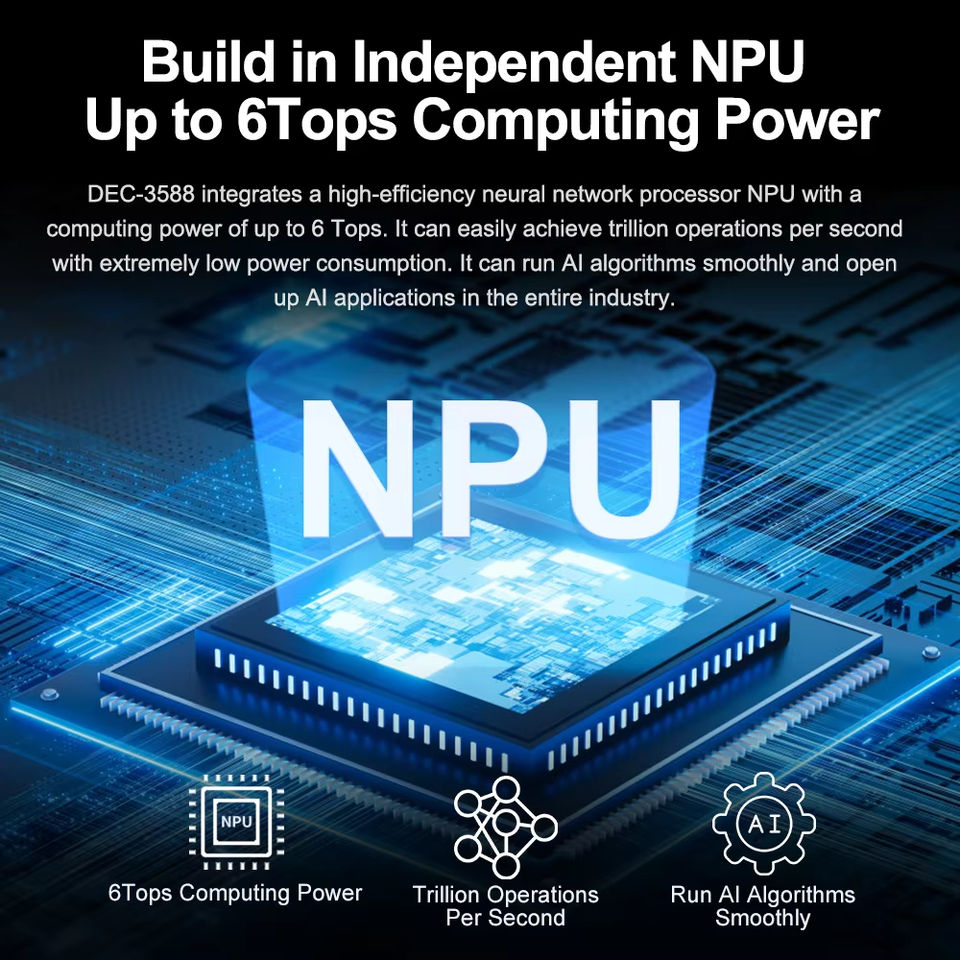 DEC-3588 mini-PC Android 12/13 Rockchip RK3588 8K AI 8 cœurs 64 bits 32 Go NPU 6Tops Linux QT Debian 10/11 Ubuntu 18.04/20.04 AIoT