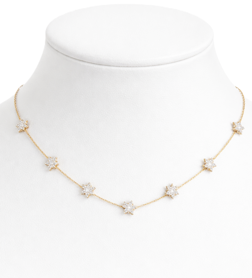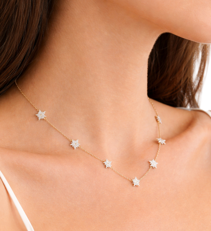 Collier en diamant de laboratoire minimaliste DEF Couleur VS VVS, forme étoile, en or jaune massif 14K, bijoux fins