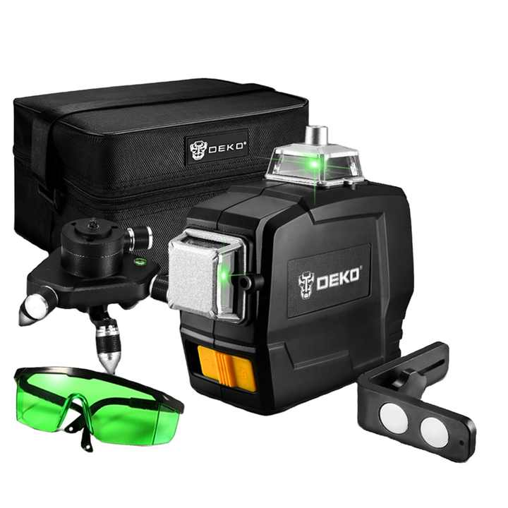 Niveau laser vert miniature DEKO DKLL12PB1-S1 M12, lignes horizontales et verticales croisées avec auto-nivellement