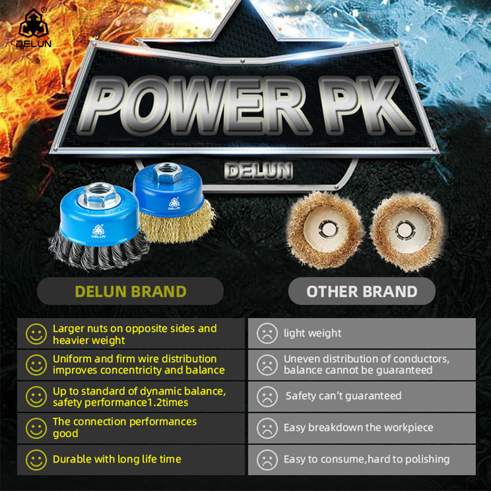 DELUN Kit de 5 brosses métalliques haute performance pour meuleuse d'angle, personnalisable OEM, diamètre 50 mm, élimination agressive de la rouille