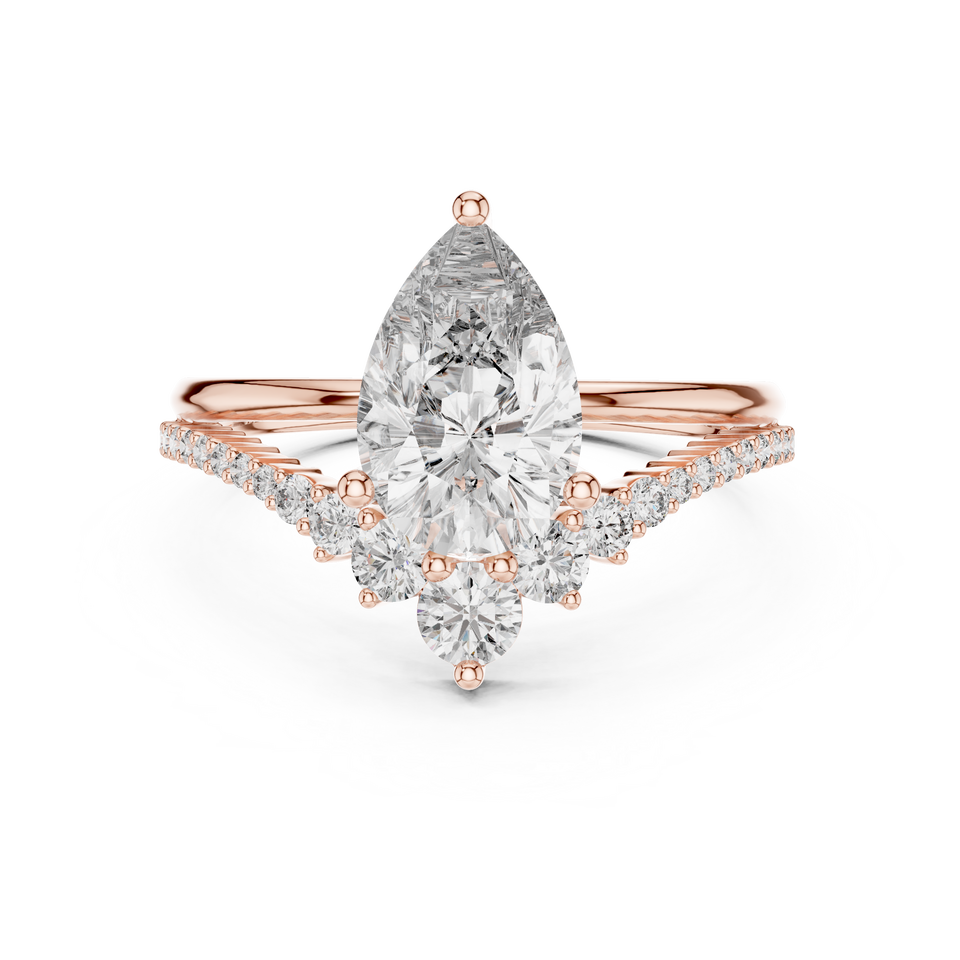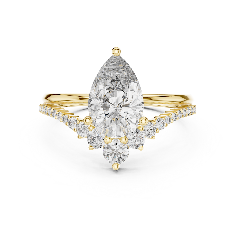 Bague de fiançailles de luxe DELUSIONAL en or blanc 18 carats plaqué rhodium avec diamant de laboratoire taille poire 2 carats et pierres latérales taillées 0,3 carat, certifiée