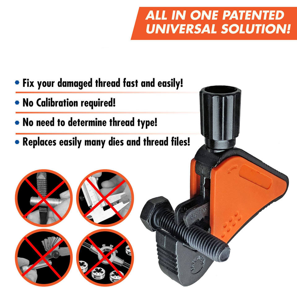 Outil de réparation de filetage externe universel en métal durable DEM. Remplace facilement des centaines de matrices. Poursuit automatiquement