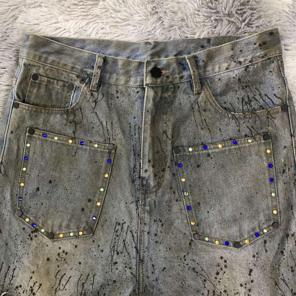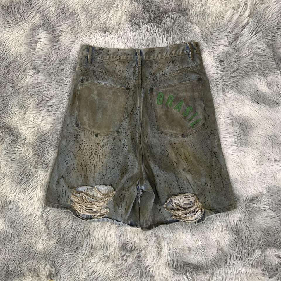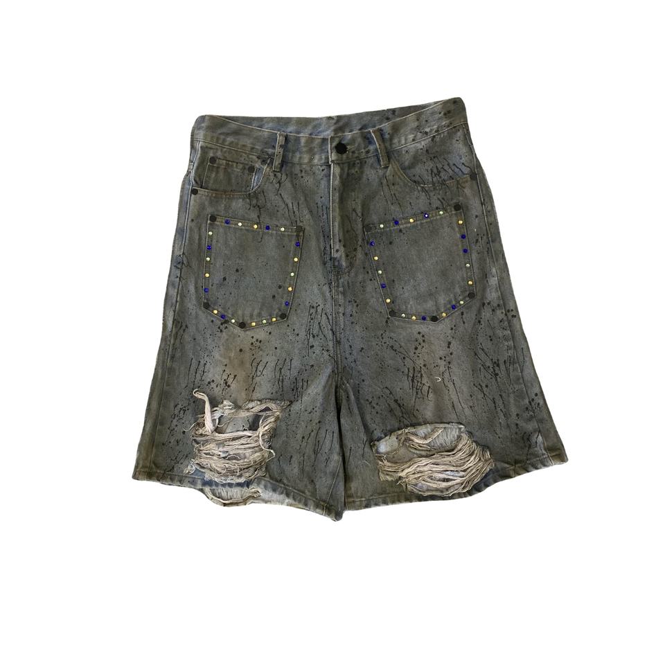 DENIMGUYS 2024 Men's Casual Cotton Denim Shorts Custom Spray Painted Ripped Jeans Flat Front Distressed Washed Mud Breathable