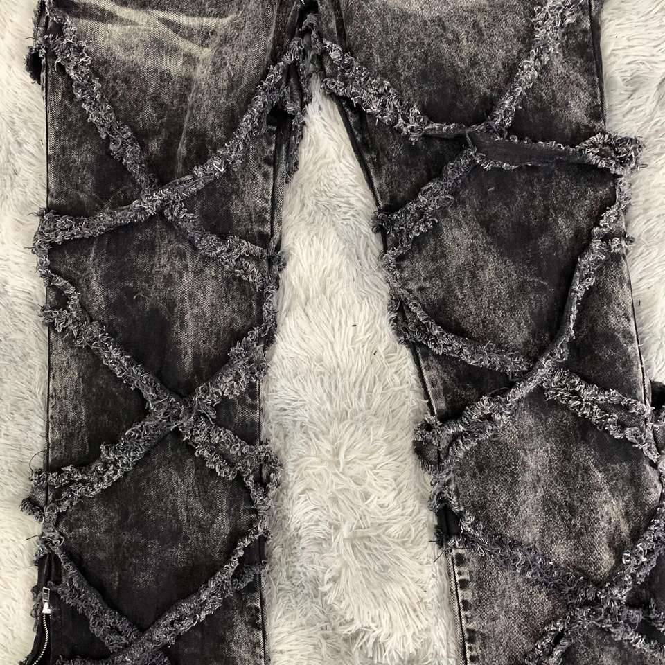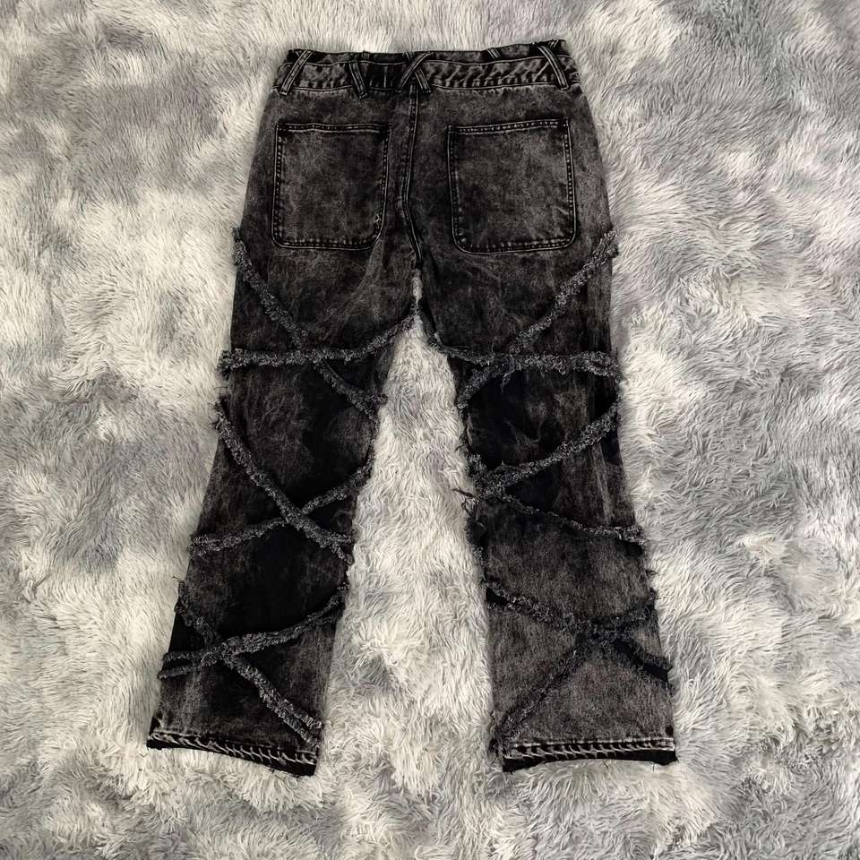 DENIMGUYS personnalisé Y2K détruit couture jean hommes noir lavé jean gothique Street Wear en détresse Baggy lâche Denim pantalon