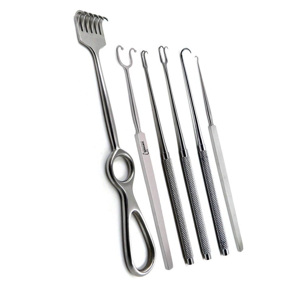 DENTRIC IMPLANTS Kit de crochets cutanés 6 pièces Instruments dentaires en acier inoxydable Réutilisables Poignée ergonomique Certifié CE Classe I Manuel