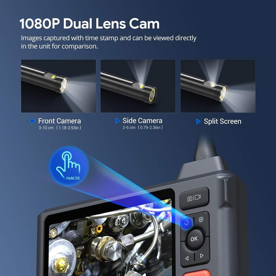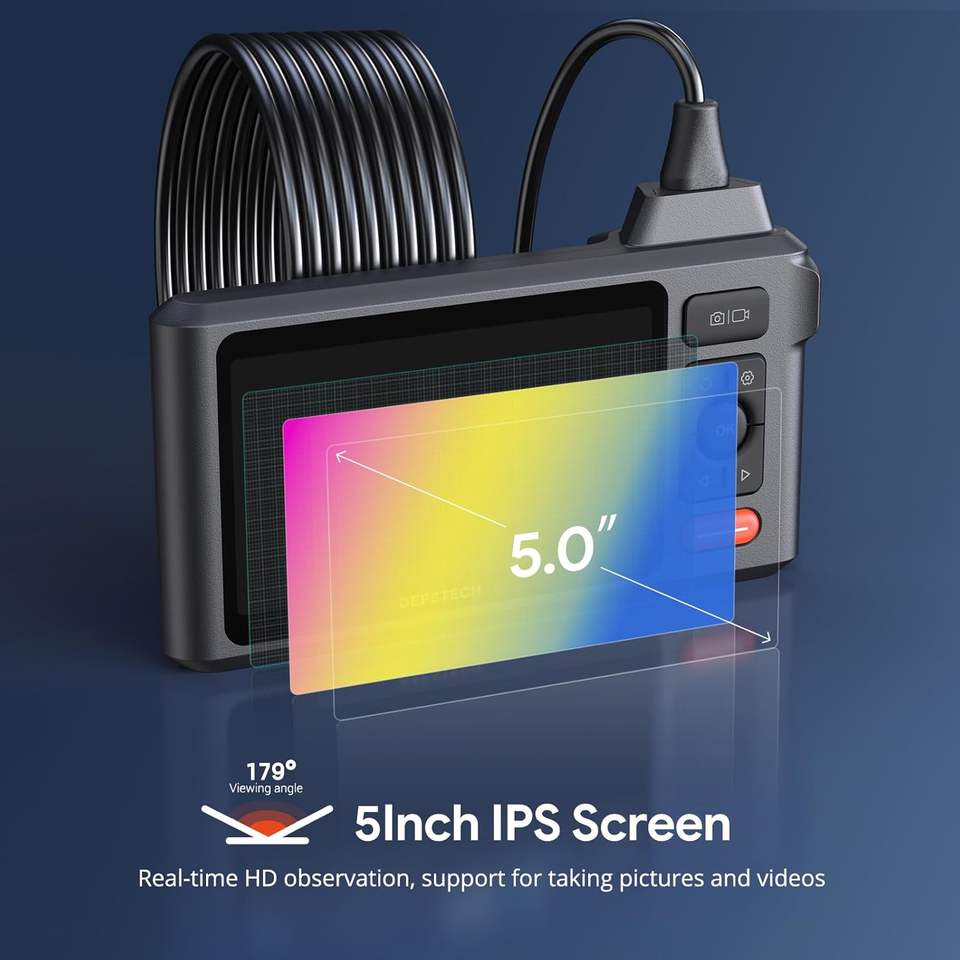 DEPSTECH 5 "IPS écran 1080P endoscope outil écran divisé IP67 étanche 7.9mm serpent portée automobile mur tuyau de vidange MicroSD