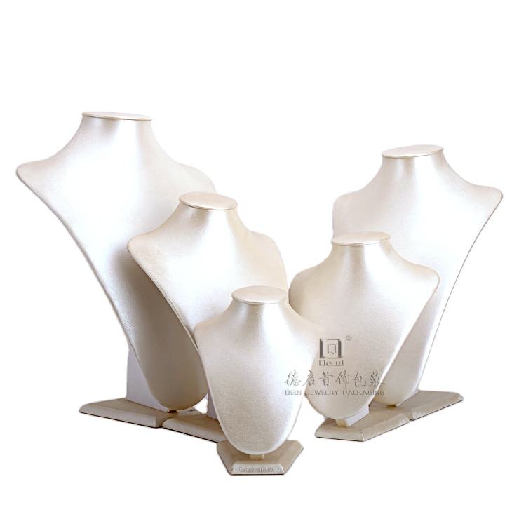 Présentoir à bijoux en cuir PU blanc sur mesure DEQI Factory, mannequins pour colliers, accessoires de bijouterie faits main de haute qualité pour boutique