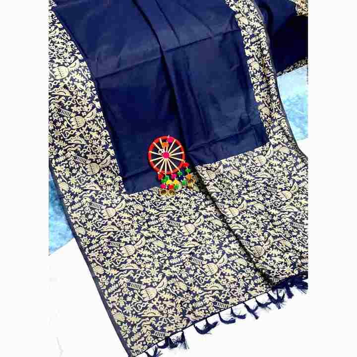 DESIGNER BANARASI SILK WEAVING JACQUARD WORK SAREE WITH UNSTITCHED BLOUSE NAVY BLUE