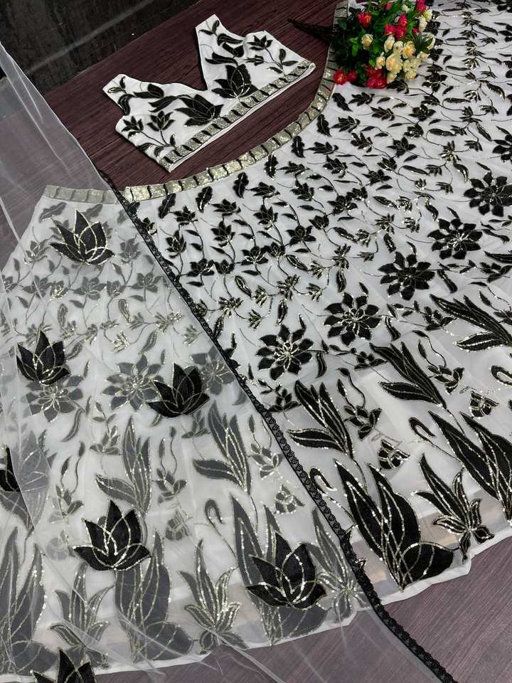 DESIGNER BOLLYWOOD WEAR HEAVY SOFT NET CHINE SEQUNCE WORK LEHENGAS AVEC HEAVY NET DUPATTA