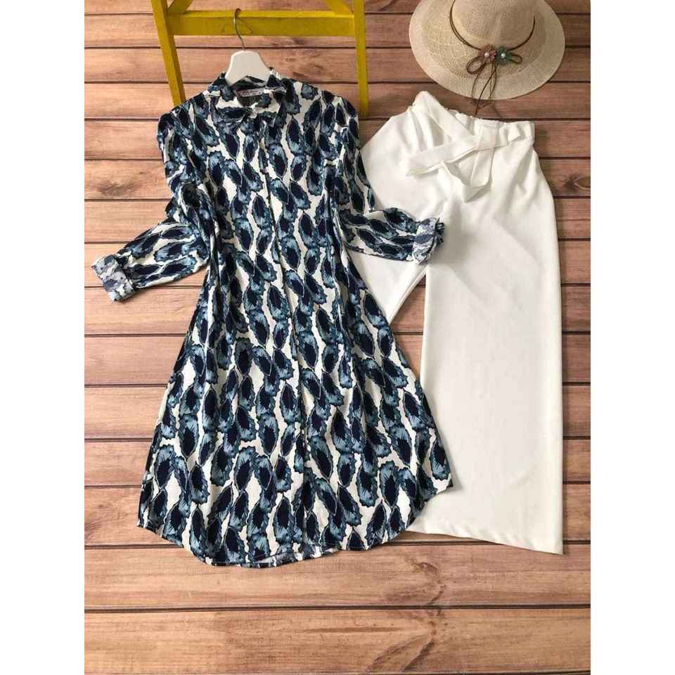 TOP DE TRAVAIL IMPRIMÉ NUMÉRIQUE EN COTON AVEC PALAZZO BLEU MARINE