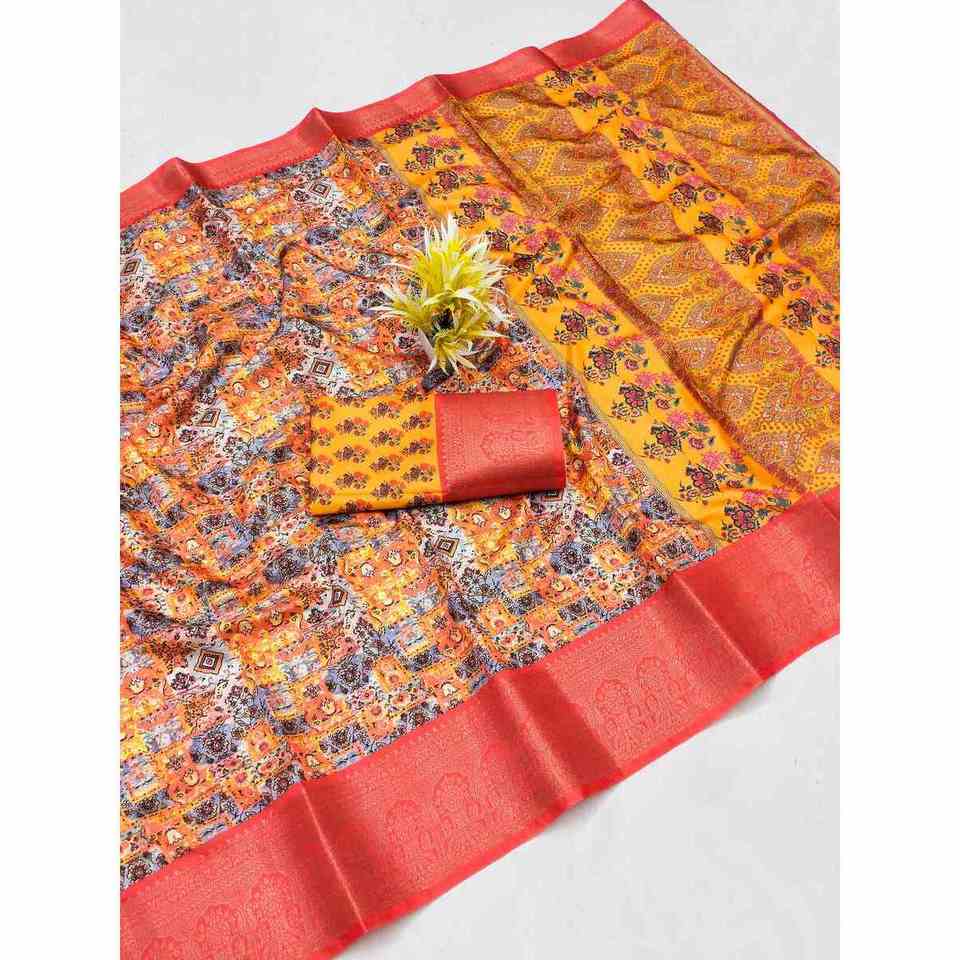 DESIGNER DOLA SILK DIGITAL PRINT WORK SAREE WITH UNSTITCHED BLOUSE YELLOW