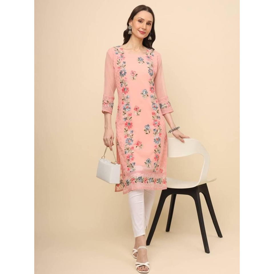 DESIGNER GEORGETTE CHICKANKARI WORK ONLY KURTI PEACH