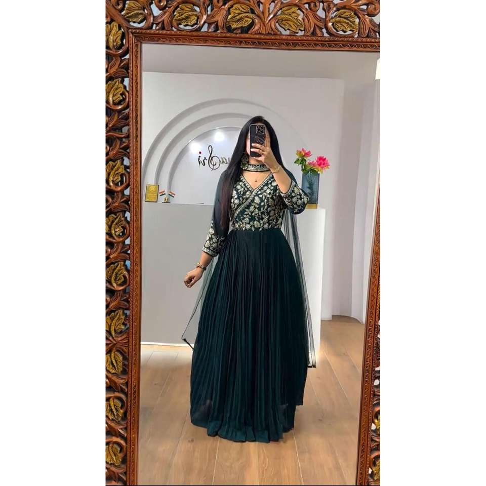 DESIGNER GEORGETTE EMBROIDERY SEQUENCE WORK GOWN with DUPATTA GREEN