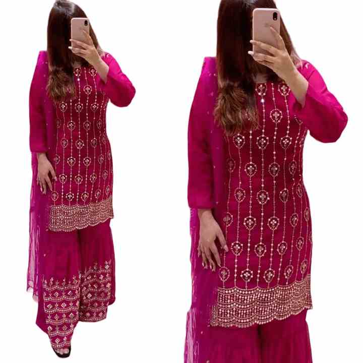 DESIGNER GEORGETTE EMBROIDERY SEQUENCE WORK TOP SHARARA WITH DUPATTA PINK